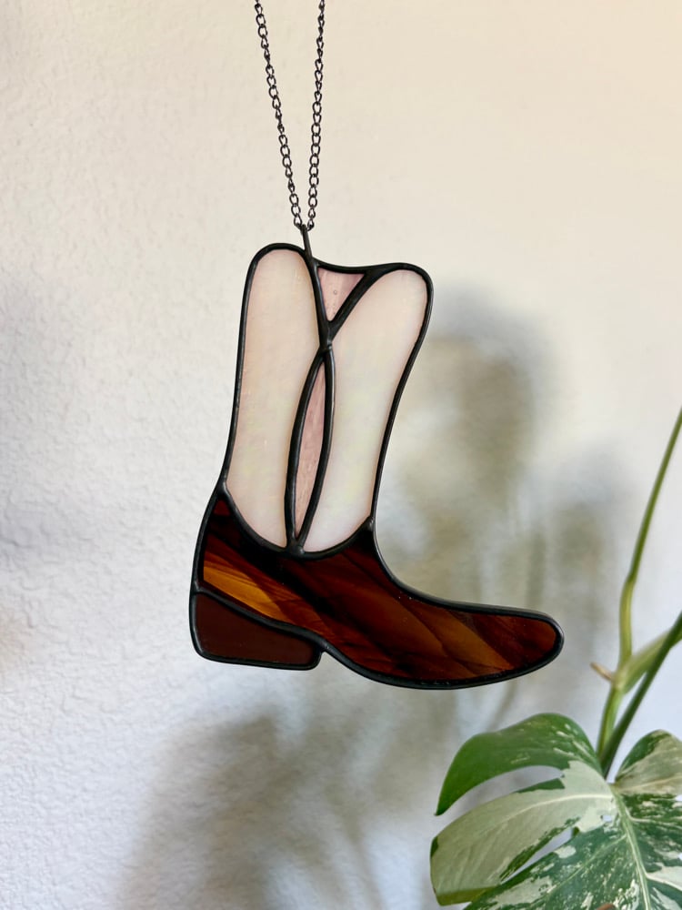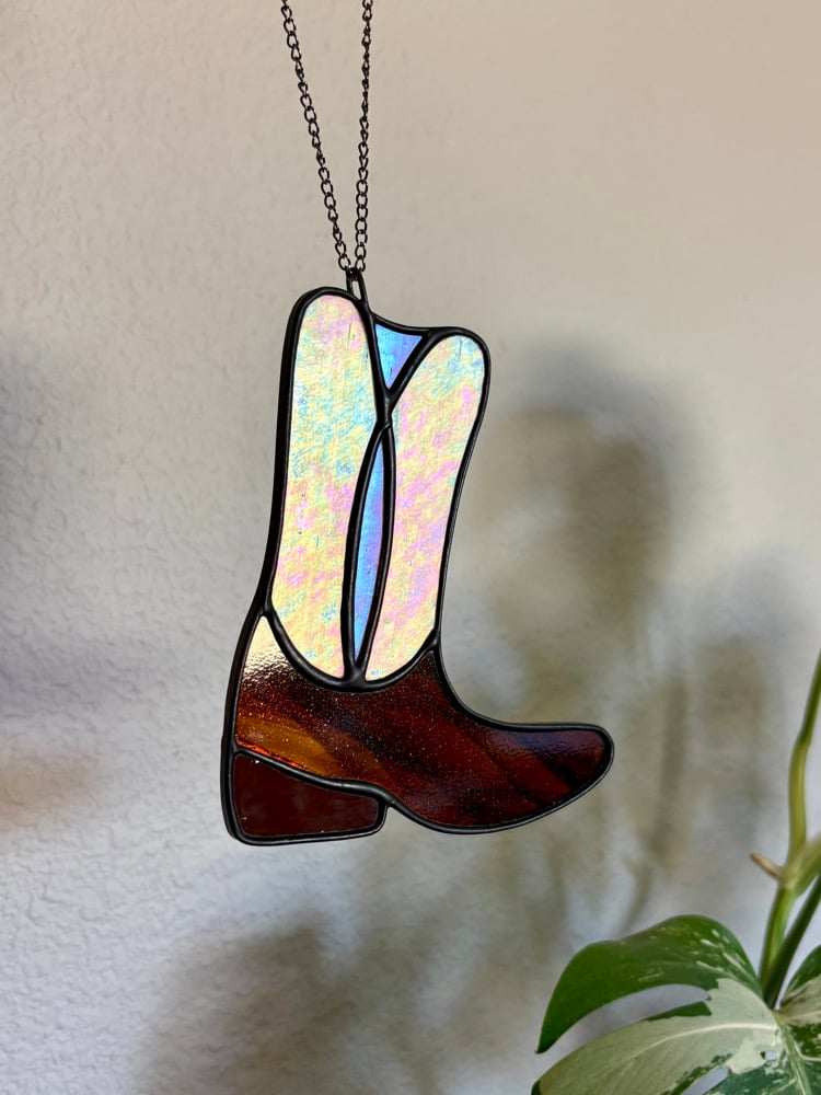 Handcrafted stained glass suncatcher. These are great to hang in a window, doorway or directly onto the wall. Copper foil method, lead hobby came trim with Black patina. Includes chain.